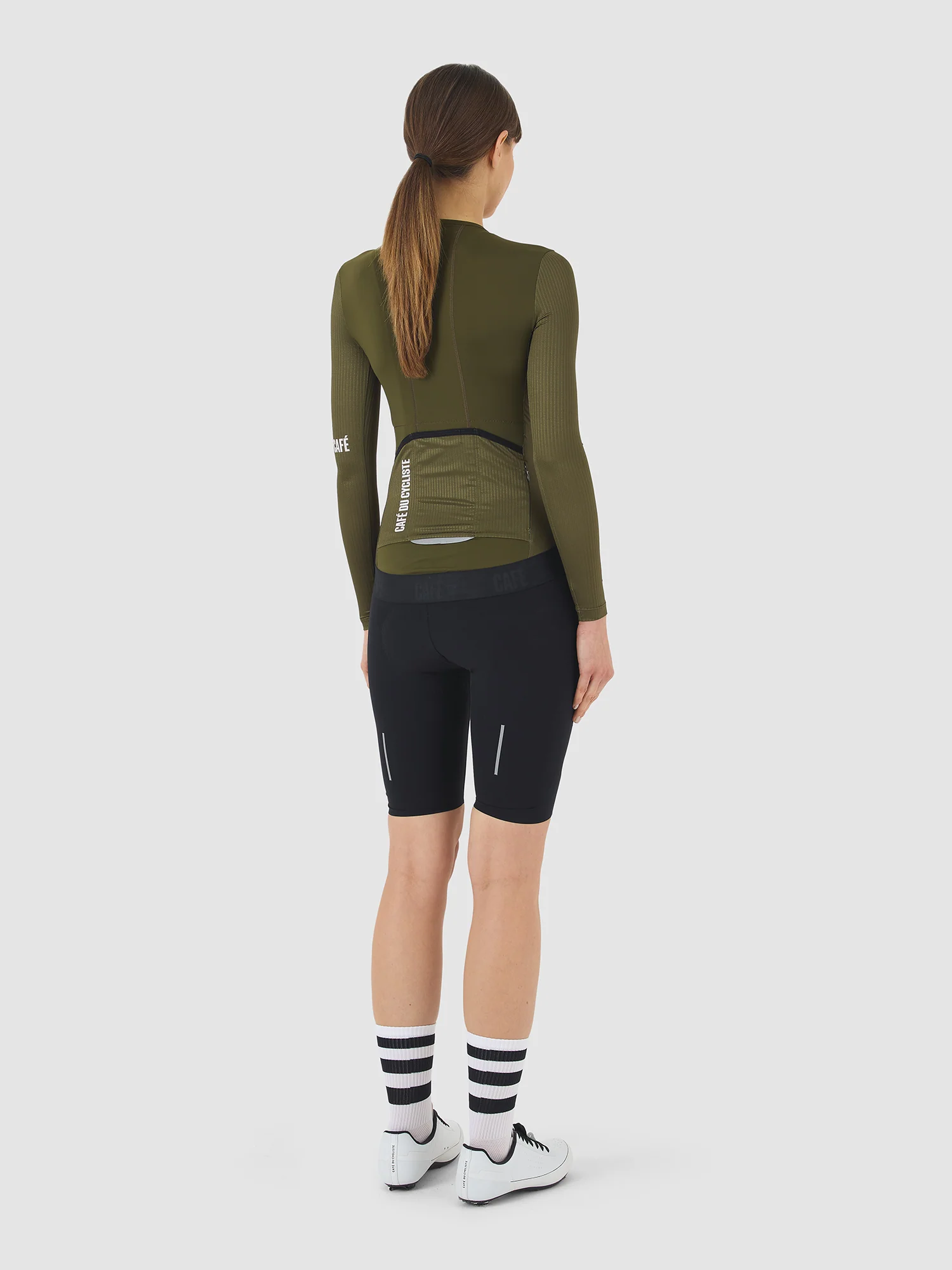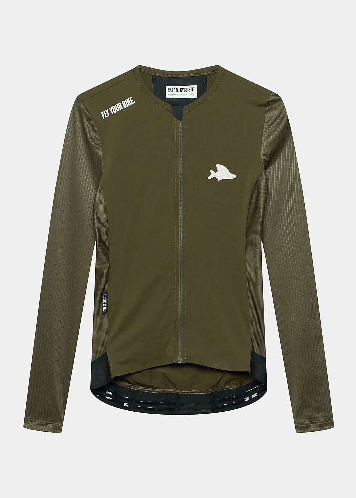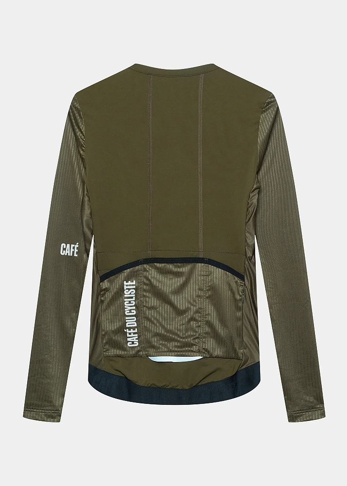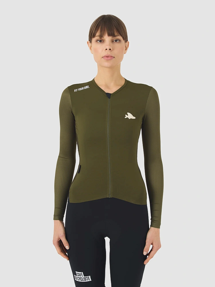 Женская велоджерси с длинным рукавом на теплую погоду темно-зеленая.