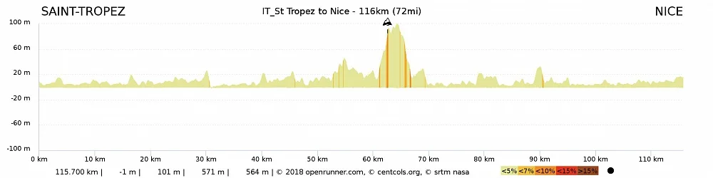 Ландшафт этого дня почти плоский и пролегает вдоль красивейшего Лазурного побережья, вас ждет контраст красных гор и белого песка на пляжах. Вы проедете по знаменитой набережной Круазетт в Каннах и финишируете на Английской набережной Ниццы!